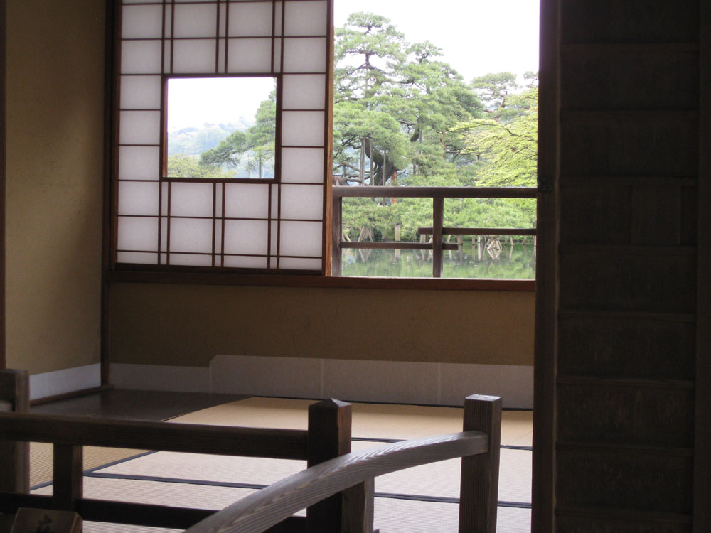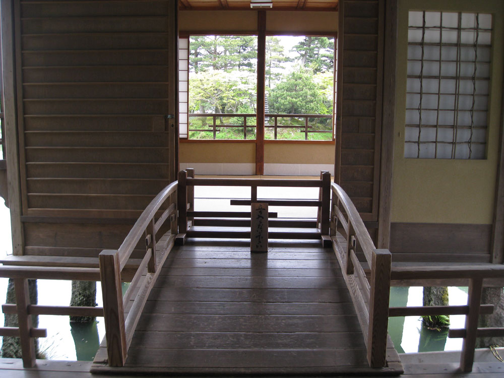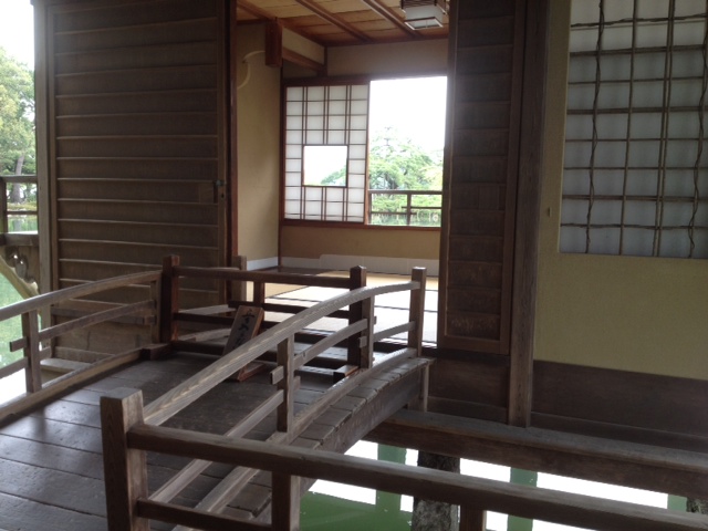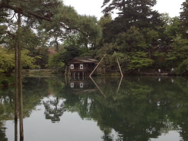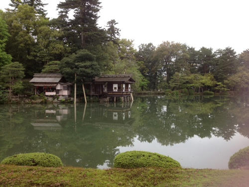 早朝ということもあって(兼六園は朝7時から入れます)、静かに幽かな水音のするだけの水に浮かぶ小亭。すんすいさんの気持ちが分かるような気がしました。だって居心地良すぎていつまでもいたくなっちゃう。
